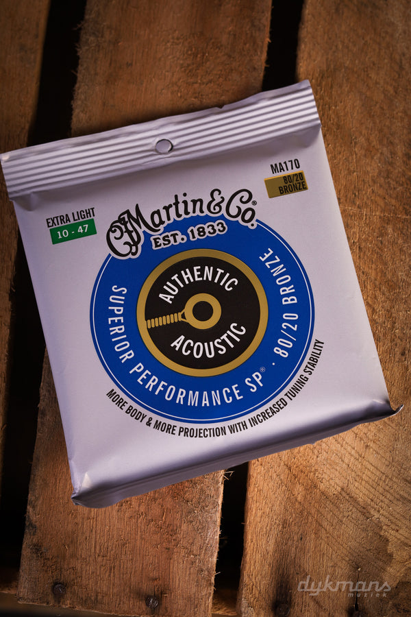 De welbekende 80/20 Bronze snaren van Martin Guitars: Light 10-47!