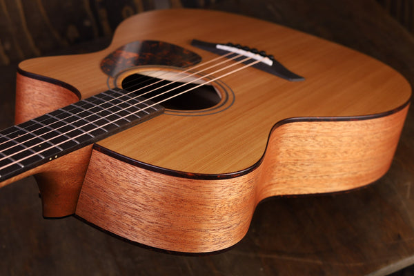 De blue serie van Furch laat zich kenmerken door zijn organische, naturel afwerking. Zo ook deze mooie OM met Cutaway, die dankzij de Open-Pore finish oogt als een no-nonsense gitaar die je avond na avond naar elk optreden mee kunt nemen. Het betreft hier het wat kleinere OM model, met een handige cutaway voor extra comfort en bereik hoger op de hals. Dankzij zijn wat kleinere body en bovenblad is deze gitaar ideaal voor fingerstyle; bij een zachte aanslag produceert deze Furch al een prachtig geluid. En dat is niet voor niets; De mahonie body en ceder bovenblad werken samen voor een warme, doch gebalanceerde sound met rijke mids en een strak laag. Het unieke CNR-truss rod systeem maakt de hals enorm stabiel en makkelijk afstelbaar. Wat een complete gitaar!