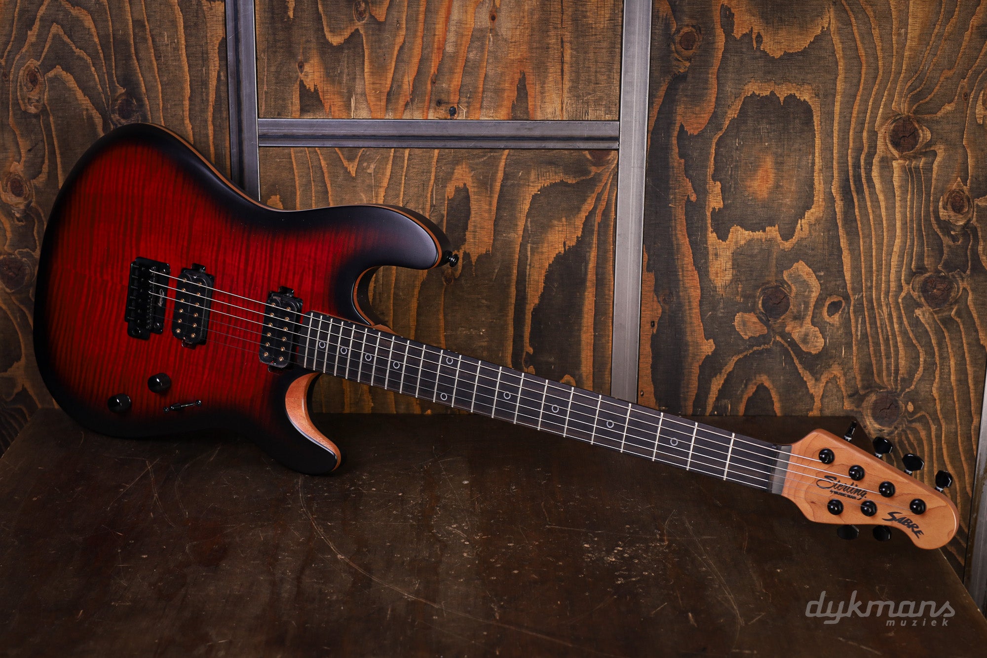 Nieuw in de range van Sterling by Music Man: De Rabea signature in een schitterende Blood Flame Burst!