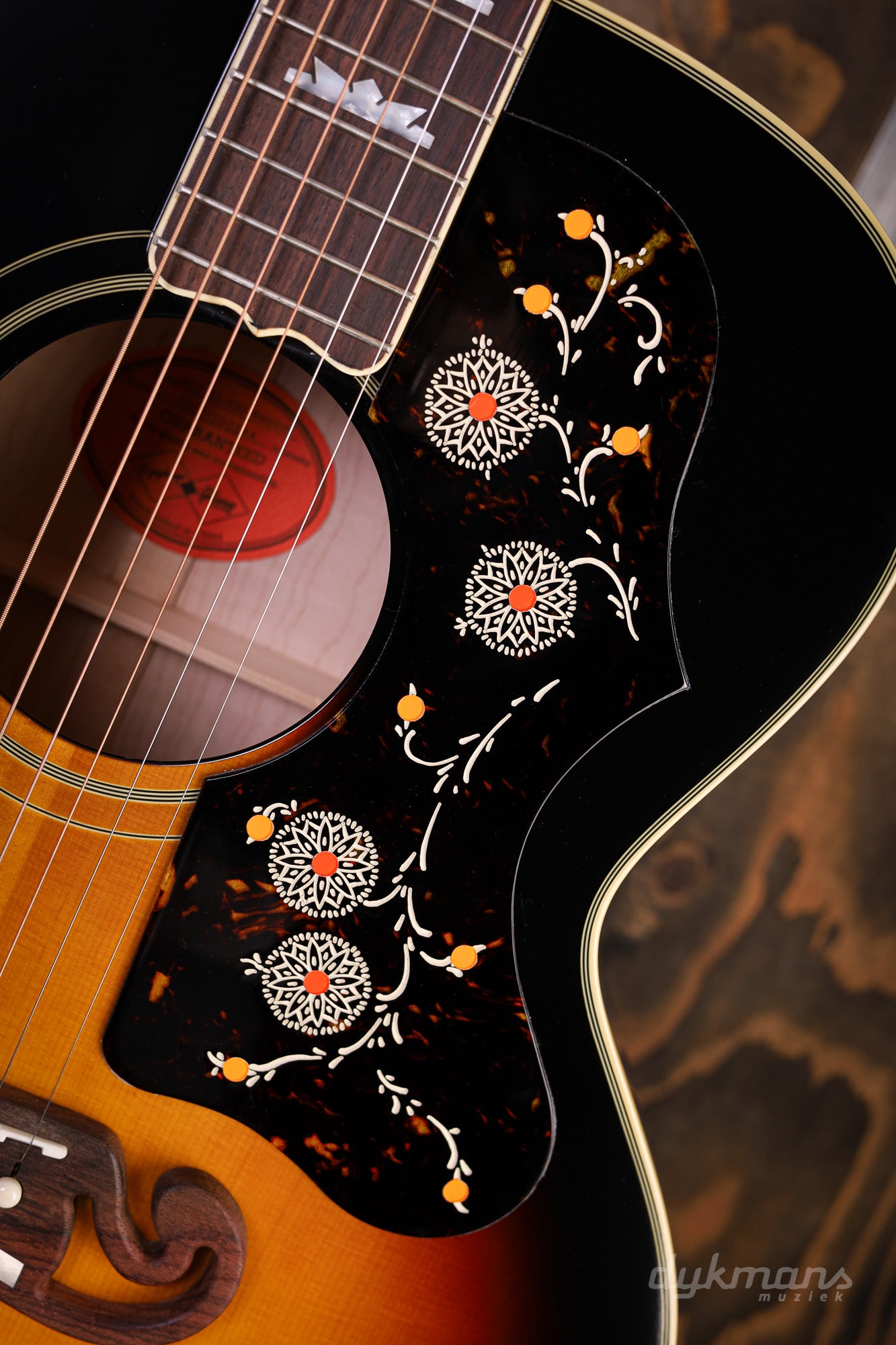 Ook visueel is dit een gitaar die je niet zomaar vergeet. De SJ-200 pickguard met vintage graphics, de rosewood Moustache™ brug met parelmoer inlays, de benen nut en saddle, en de Gibson-stijl open-book headstock met elegante inlays maken het plaatje compleet. Bij de Antique Natural versie prijkt zelfs een klassieke stinger op de achterkant van de headstock. Uiteraard ontbreekt het Inspired by Gibson Custom Double Diamond detail niet.
