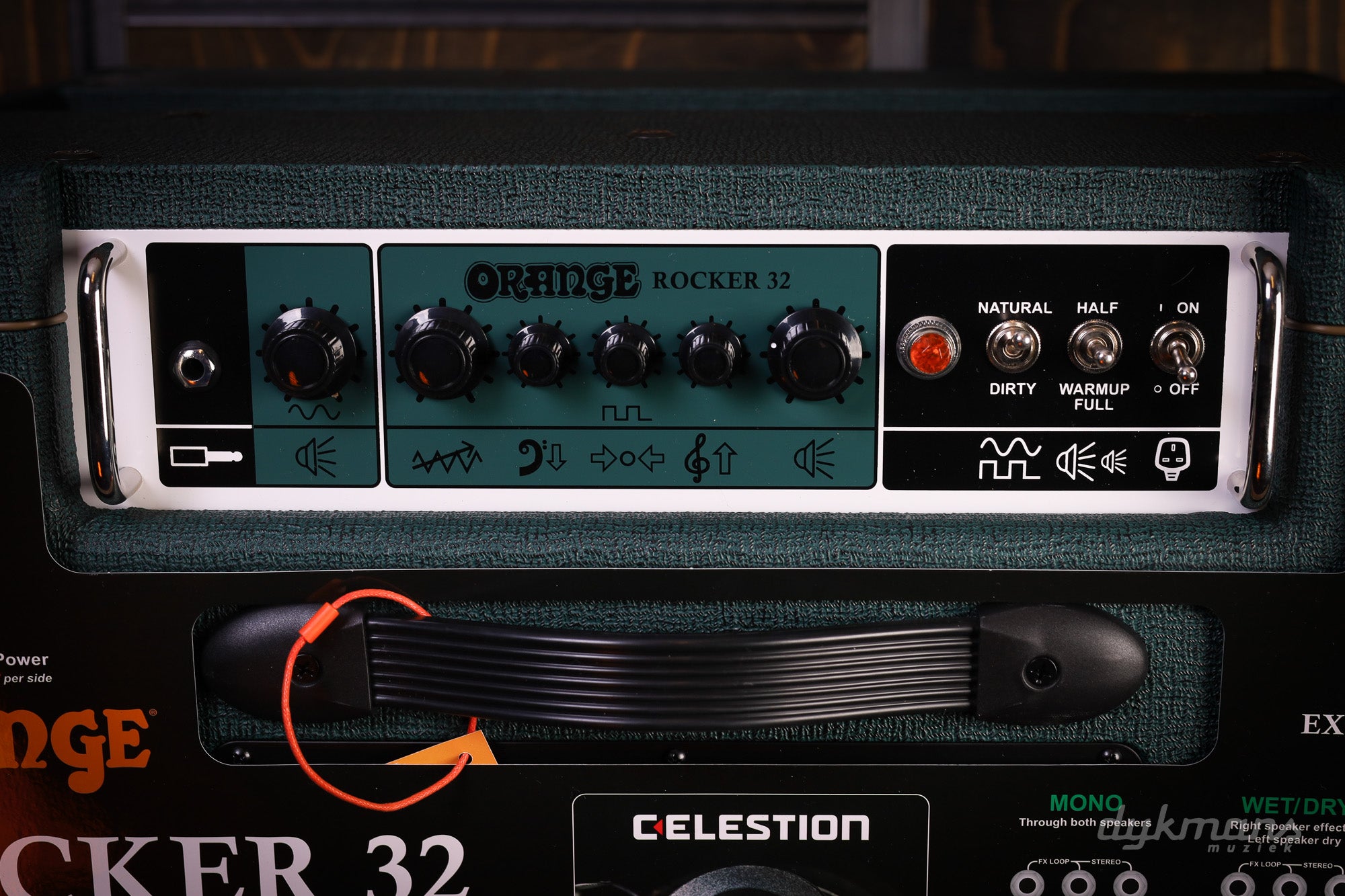 Under the hood, you'll find two Celestion G10N-40 speakers , a stereo FX loop , and two fully tube-driven channels . That means tons of headroom, warm cleans, and that signature, raw Orange overdrive that beautifully opens up when you turn it on. Play in stereo for a wide, spacious soundstage full of depth and movement, or in mono for a tight, direct punch with a full midrange.