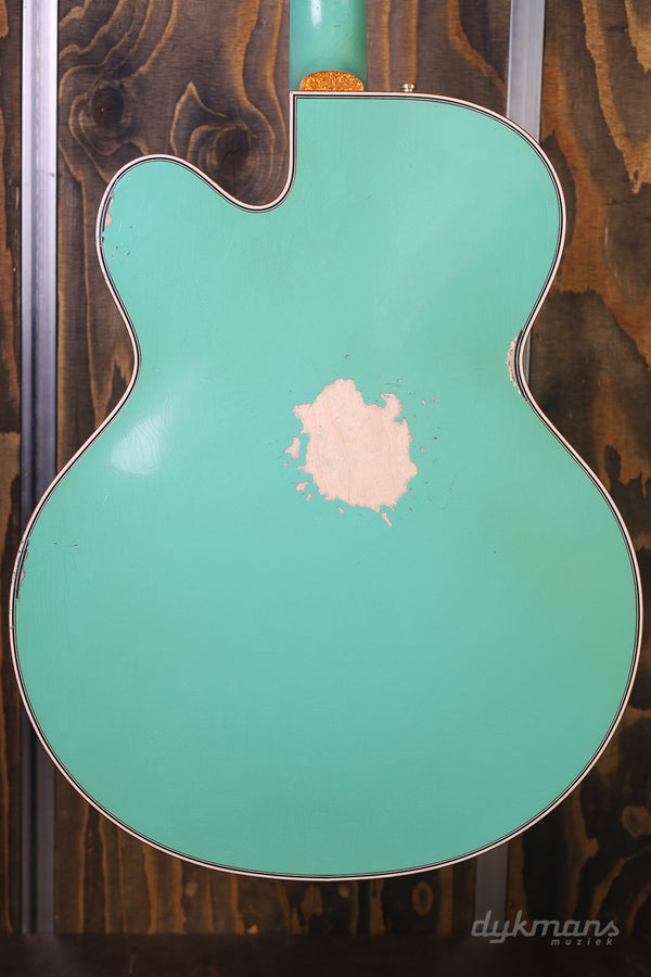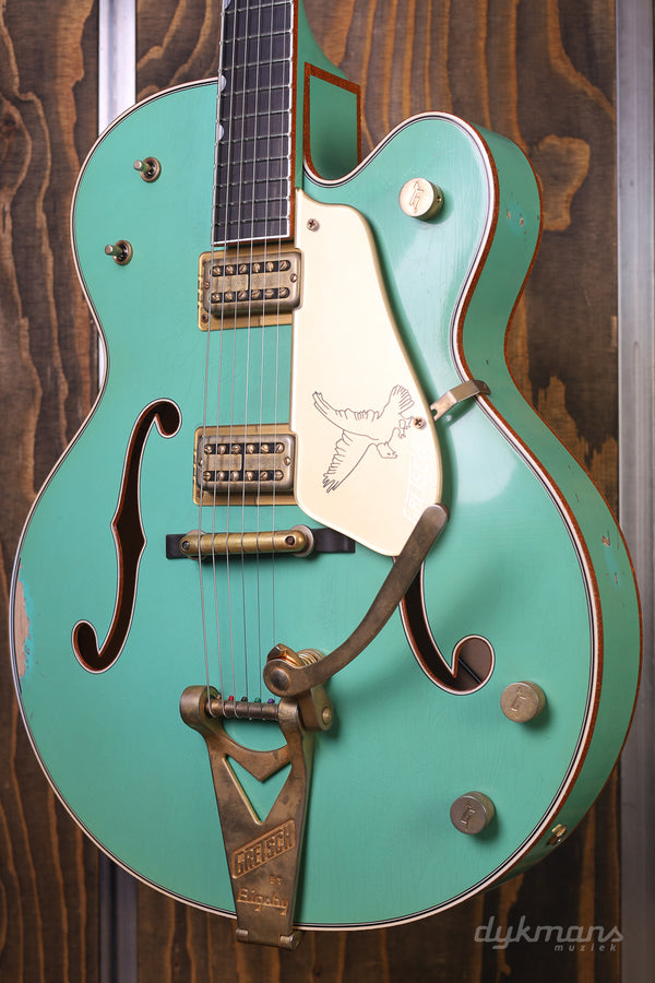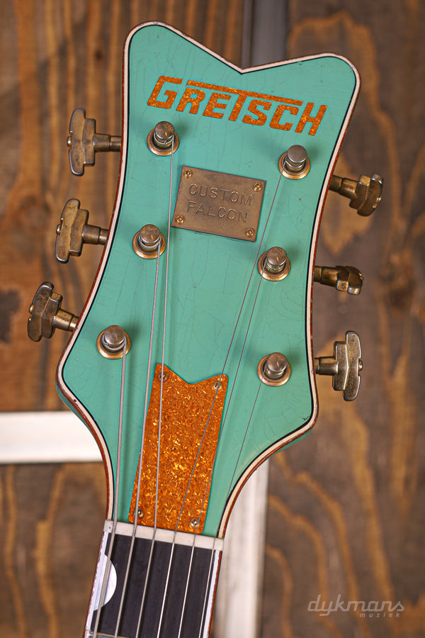 This Heavy Relic 1959 White Falcon from the Gretsch Custom is a real beauty with its Sea Foam Green Finish!
