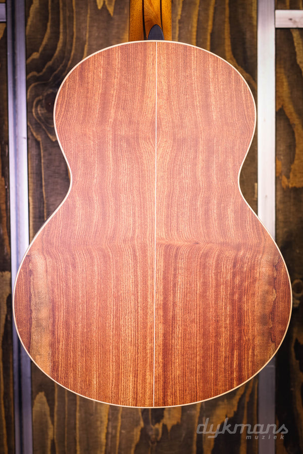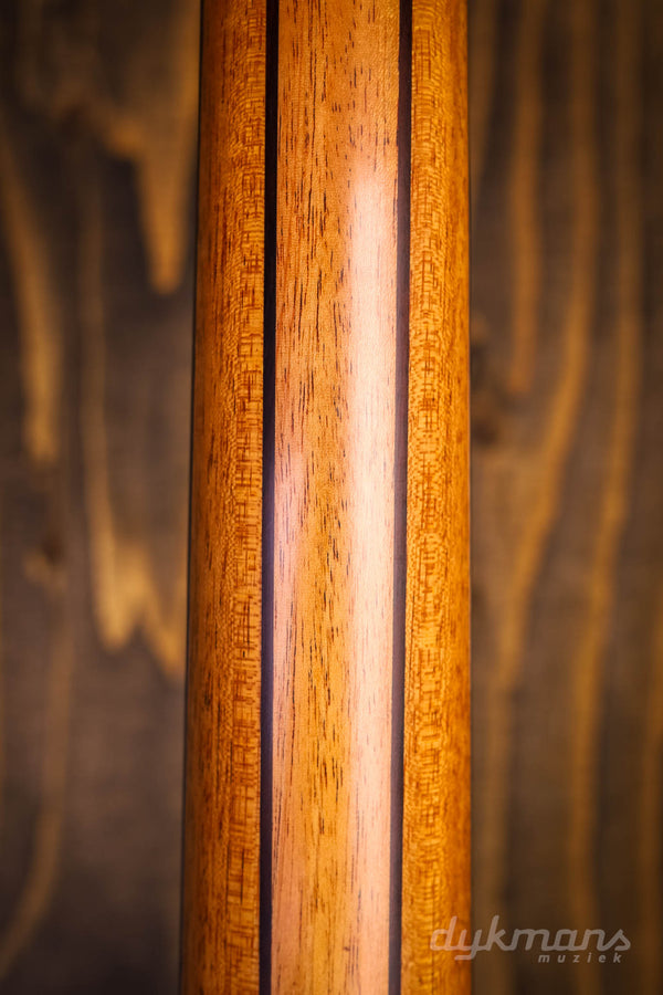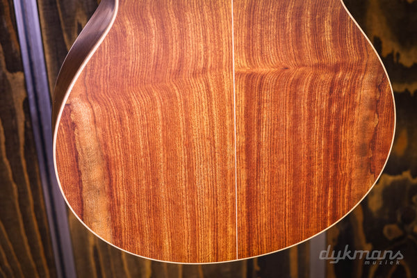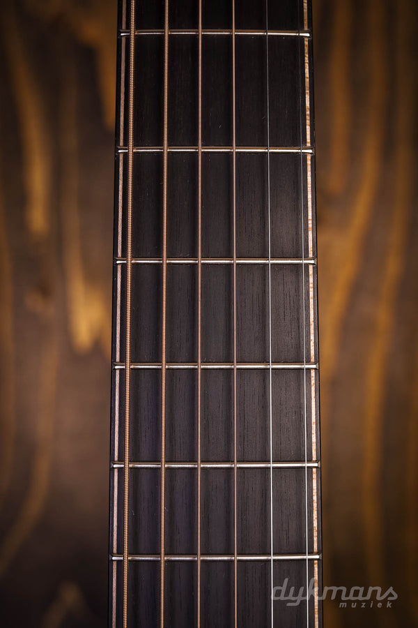 What a beautiful instrument this is! The Lowden WL35 12-fret WA/RC. This guitar is equipped with a very nice Red Cedar top and a truly breathtaking Figured Walnut back and sides. The Wee Lowden is the smallest size Lowden offers, and when combined with the 12-fret configuration, this is perhaps the most intimate acoustic guitar you could wish for. Perfect for strumming on the couch, but this boy is of course also ready for serious stage work. The special combination of cedar and walnut gives a very tight focus so that even the most complex strumming parts remain intact. Even the softest tones really jump out of the sound box. And for such a small guitar, percussion parts also hold up surprisingly well. Because it befits a 35-series Lowden, it is a visual feast. For example, take a look at the bookmatched ebony headstock overlay and the drawing in the used walnut. We also find the super chic Gotoh 510 Gold tuners and rosewood bridge on this WL35. Including classy Lowden harcase.