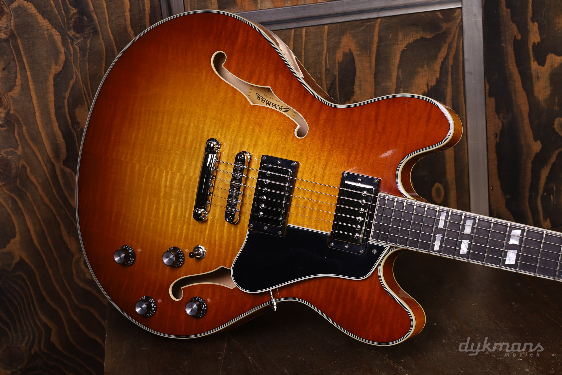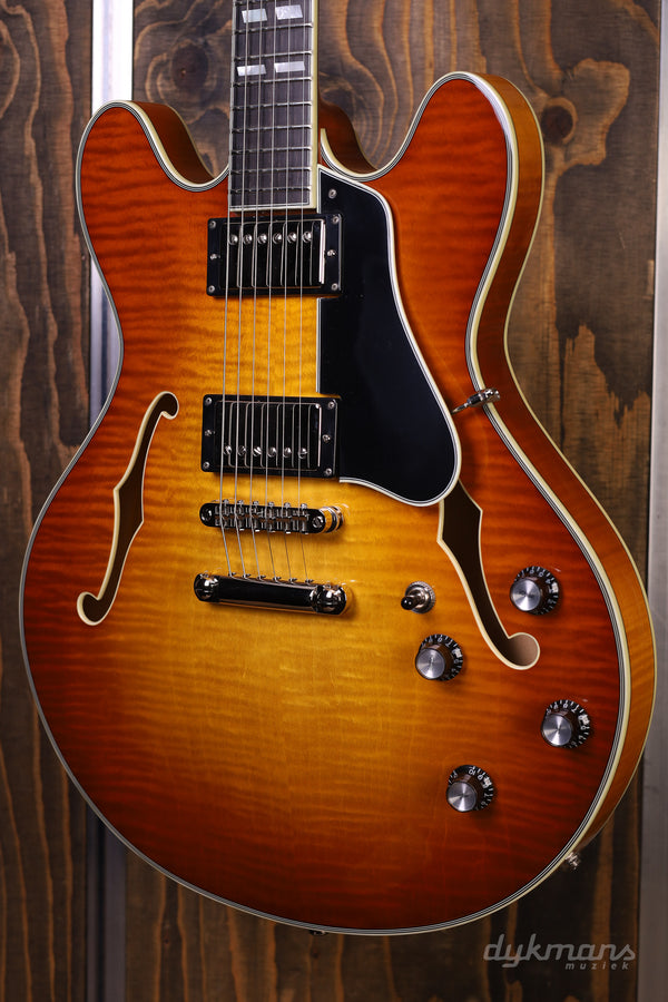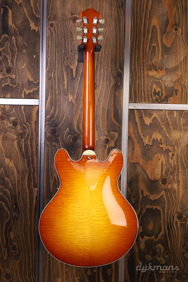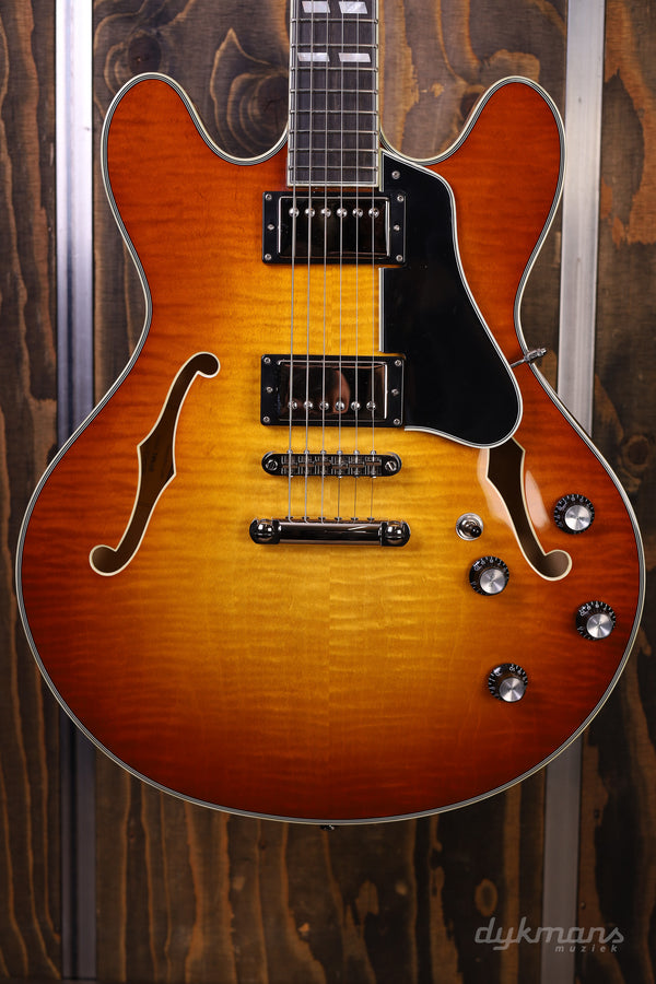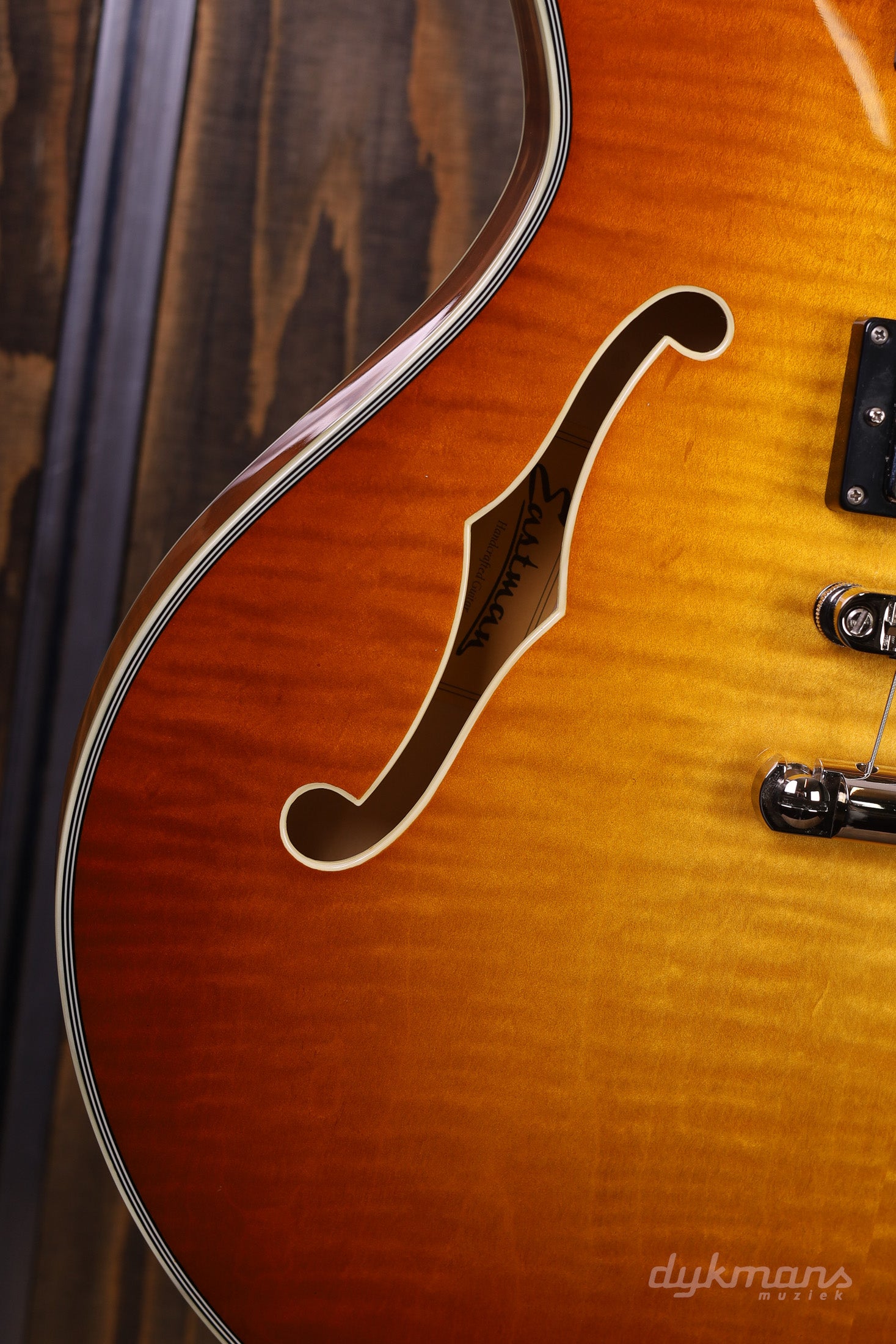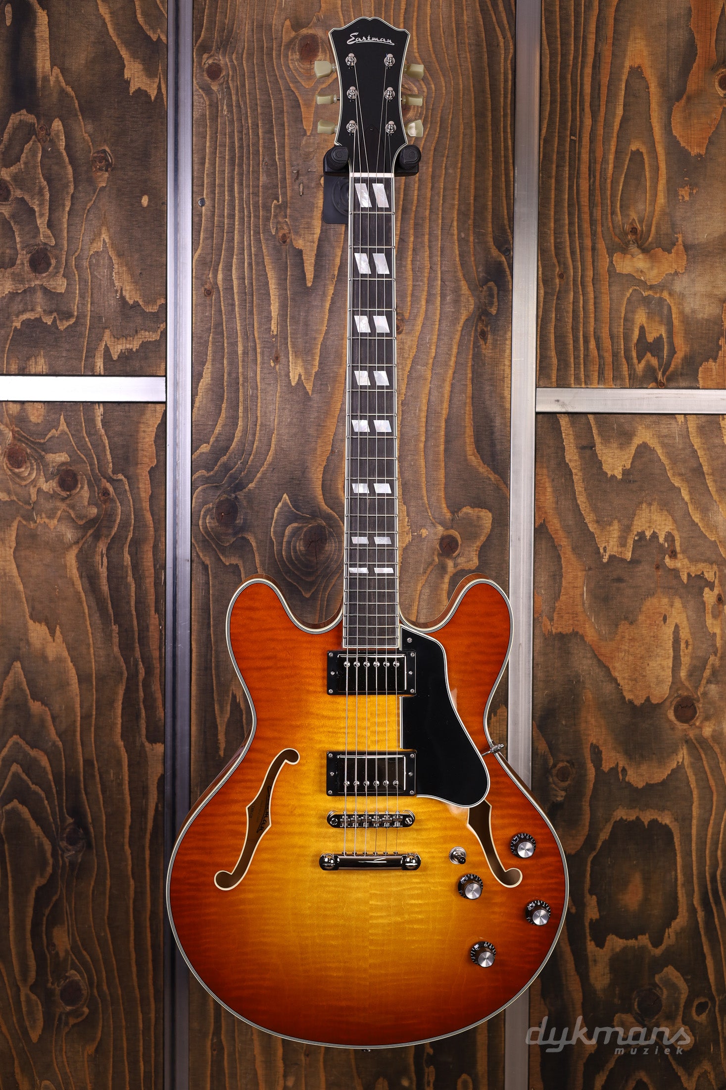 Prachtige Semi-Hollow van Eastman in classy Gold Burst finish, met Seymour Duncan elementen!