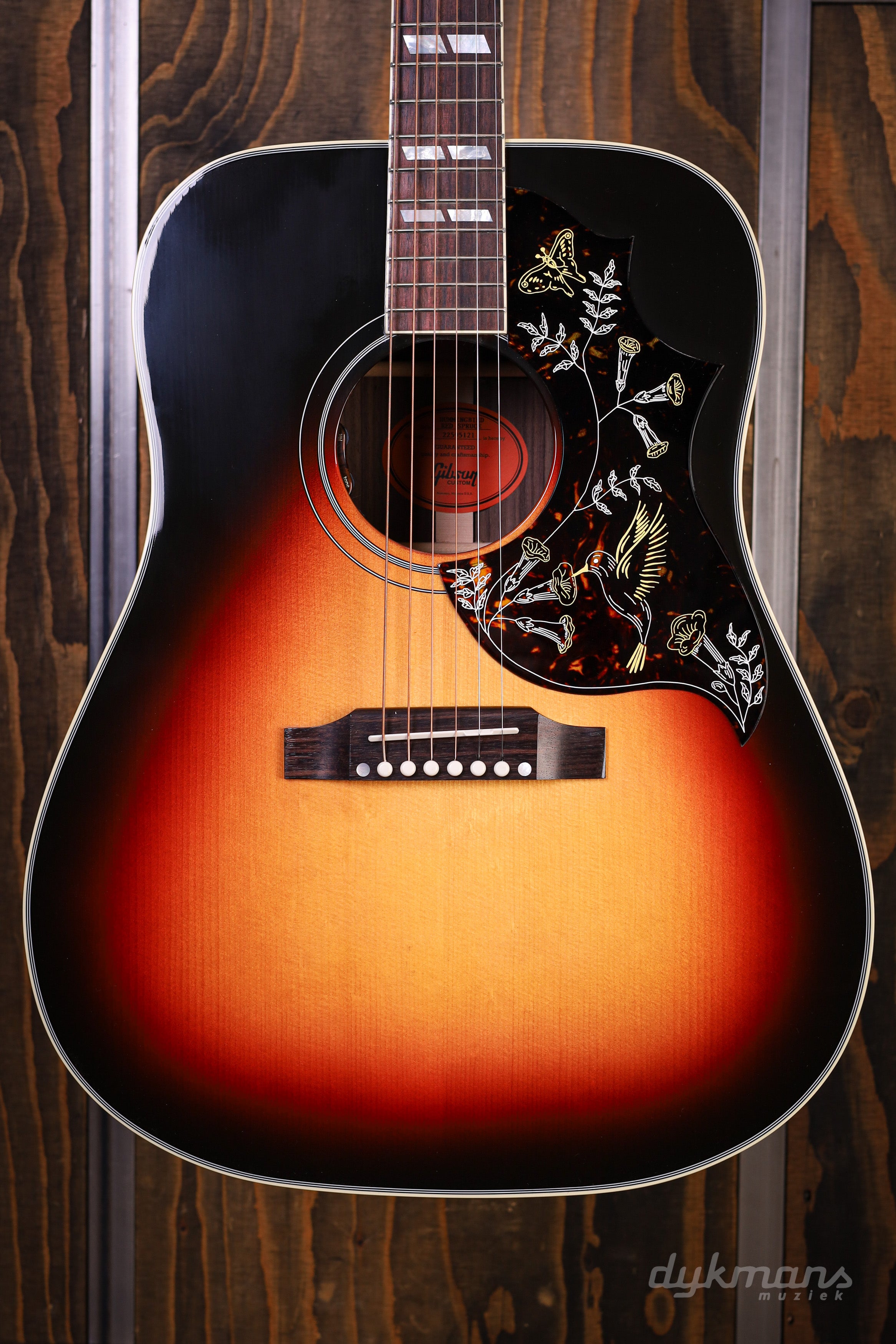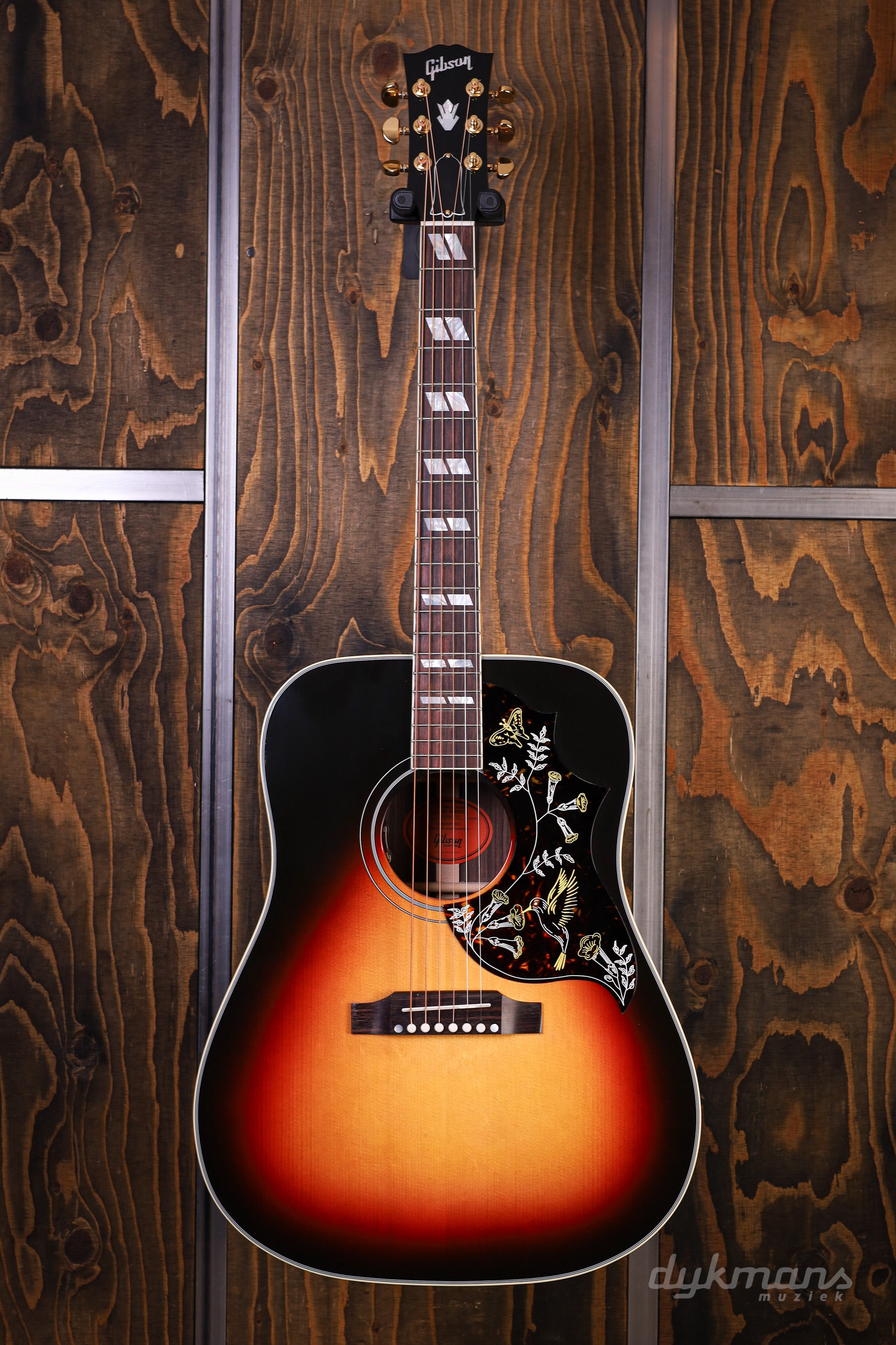 De karakteristieke square-shoulder body zorgt voor een krachtige en brede sound, terwijl de diepe Tri-Burst Gloss afwerking het instrument een stijlvolle en exclusieve uitstraling geeft. De beroemde Hummingbird slagplaat met bloemenmotief, de parallellogram inlays en de goudkleurige hardware maken het geheel visueel net zo indrukwekkend als klankmatig. Dit is een gitaar die direct opvalt op het podium en in de studio.