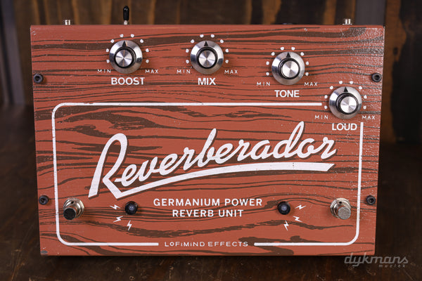 De LofiMind Effects Reverberador is één van de meest unieke pedalen die wij ooit hebben gezien. Deze analoge reverb bevat een echte springveer en een analoge Germanium preamp vol mojo. De Reverberador is alles behalve een nette, hifi reverb; het is een smerige, onvoorspelbare, Neil Young-achtige galm die je onmiddellijk in een creatieve modus brengt. De ingebouwde preamp heeft opvallend veel headroom en is in staat om je versterker een flinke optater te geven. De controls zijn eenvoudig: de reverb heeft een mix-, tone- en volumeregelaar en de boost is onafhankelijk te schakelen met zijn eigen volumeregelaar. Aan de achterkant vind je een kill dry-switch zodat je het pedaal bijvoorbeeld als insert kunt gebruiken in de studio.
