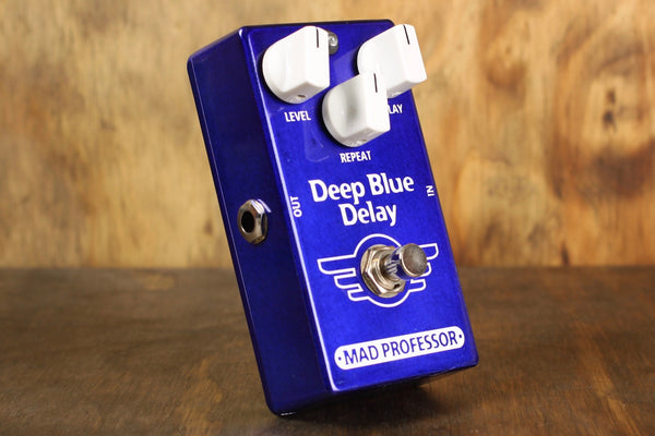 De Deep Blue Delay is een zeer mooie delay gebaseerd op de bekende Tape Echo's van vroeger. Zowel voor de versterker als in de effectsloop te gebruiken. Het directe signaalpad is compleet analoog dus het droge gitaarsignaal wordt niet aangetast. Ook heeft Mad Professor geen ruisonderdrukking ingebouwd, hierdoor klinkt de echo heel natuurlijk uit tot de zachtste herhaling. De Deep Blue delay is speciaal ontwikkeld om met overstuurde geluiden te werken omdat de meeste delays op dit gebied falen. Natuurlijk klinkt hij met cleane klanken net zo goed.