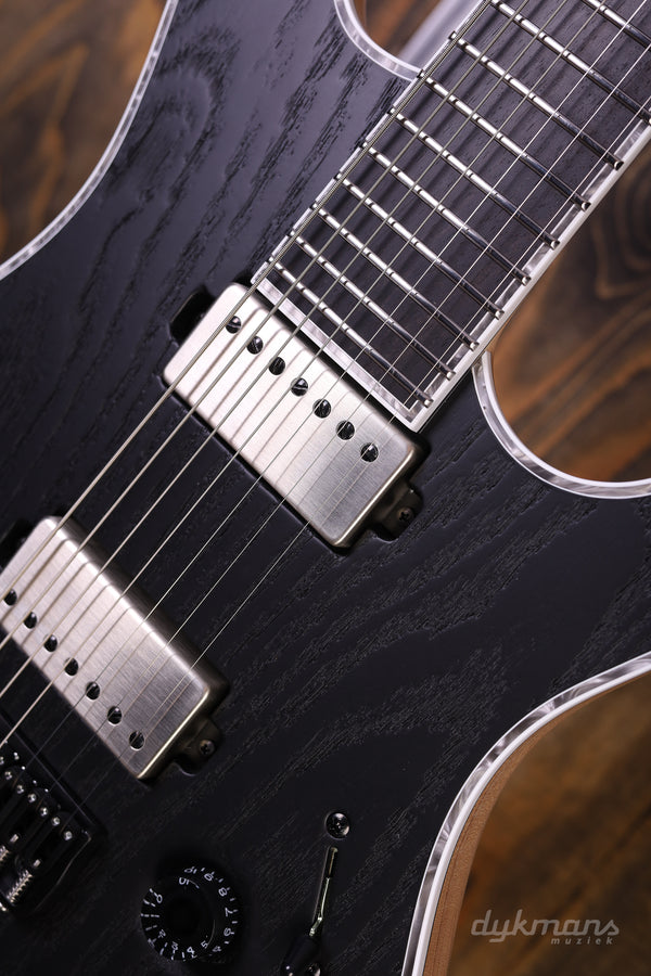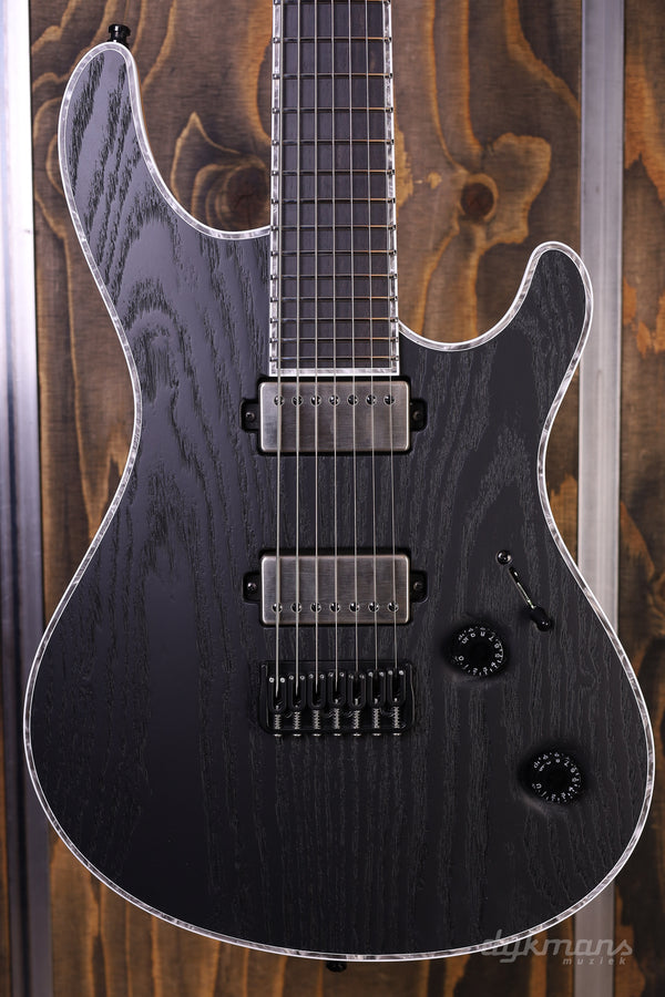 Een pikzwart monster met 7 snaren en Swamp Ash body