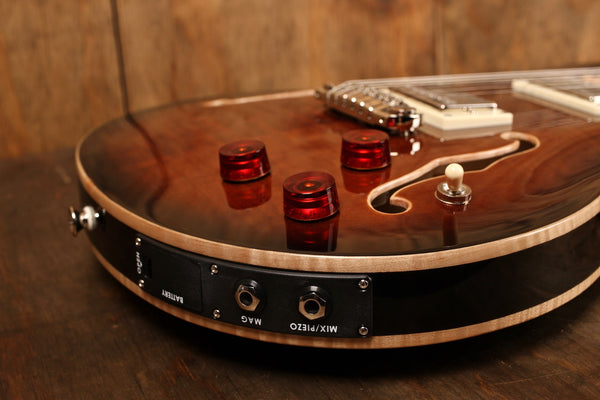 Controls: Magnetic Volume, Piezo Volume, and Tone Control with 3-Way Toggle Pickup Selector
