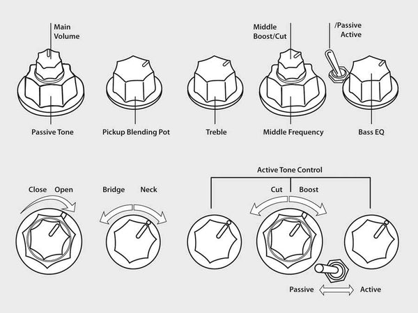 controls: volume / tone (dual pot)